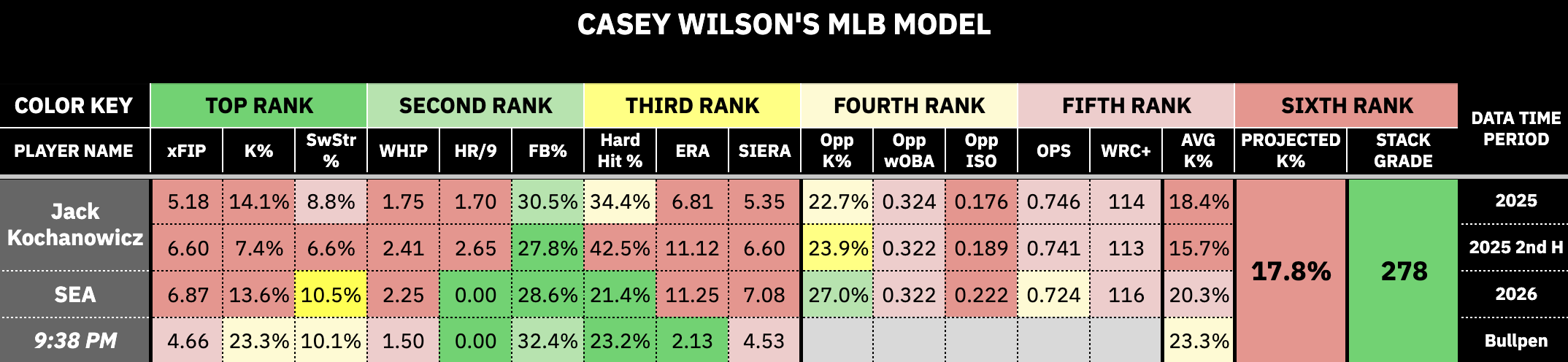 Seattle Mariners (Model Stack Grade- 278) vs. Jack Kochanowicz