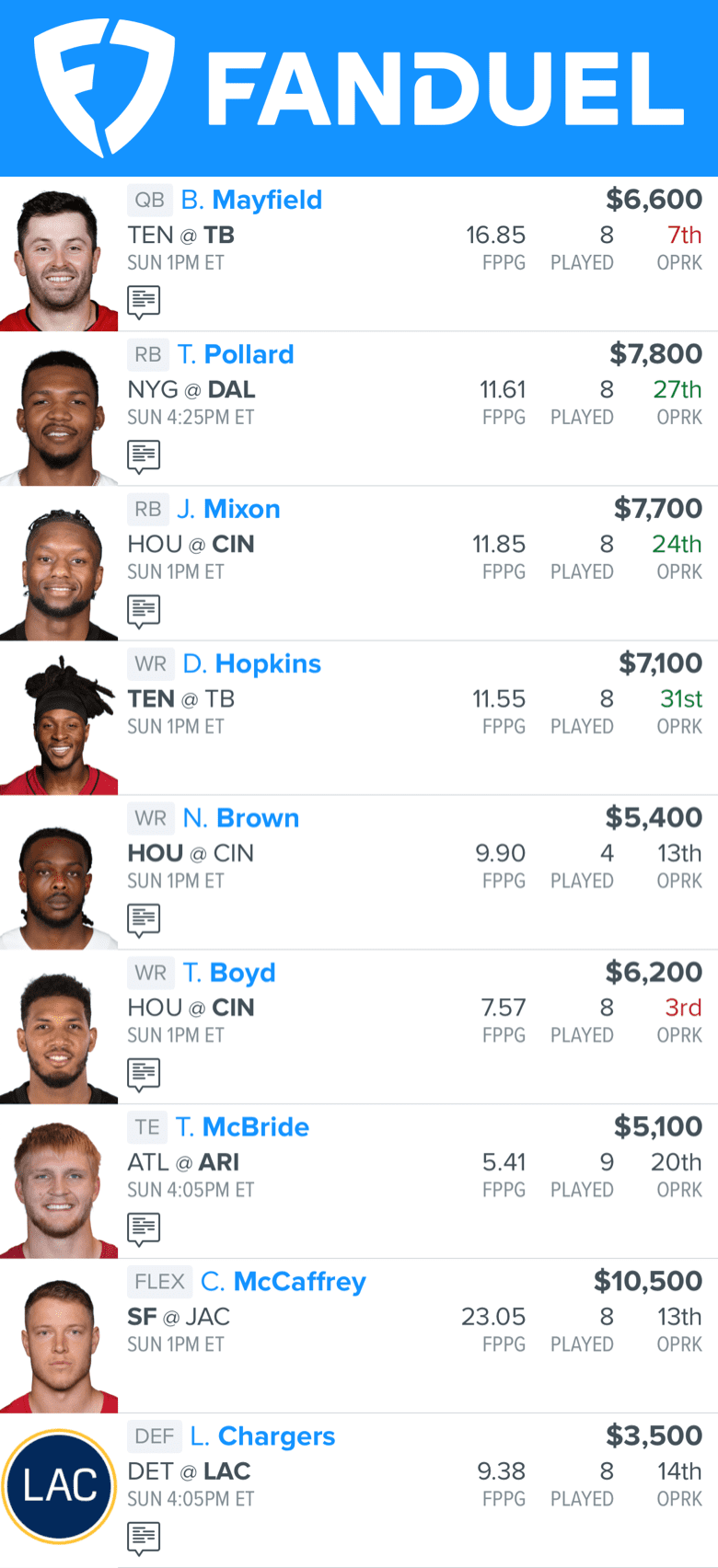 FanDuel Lineup