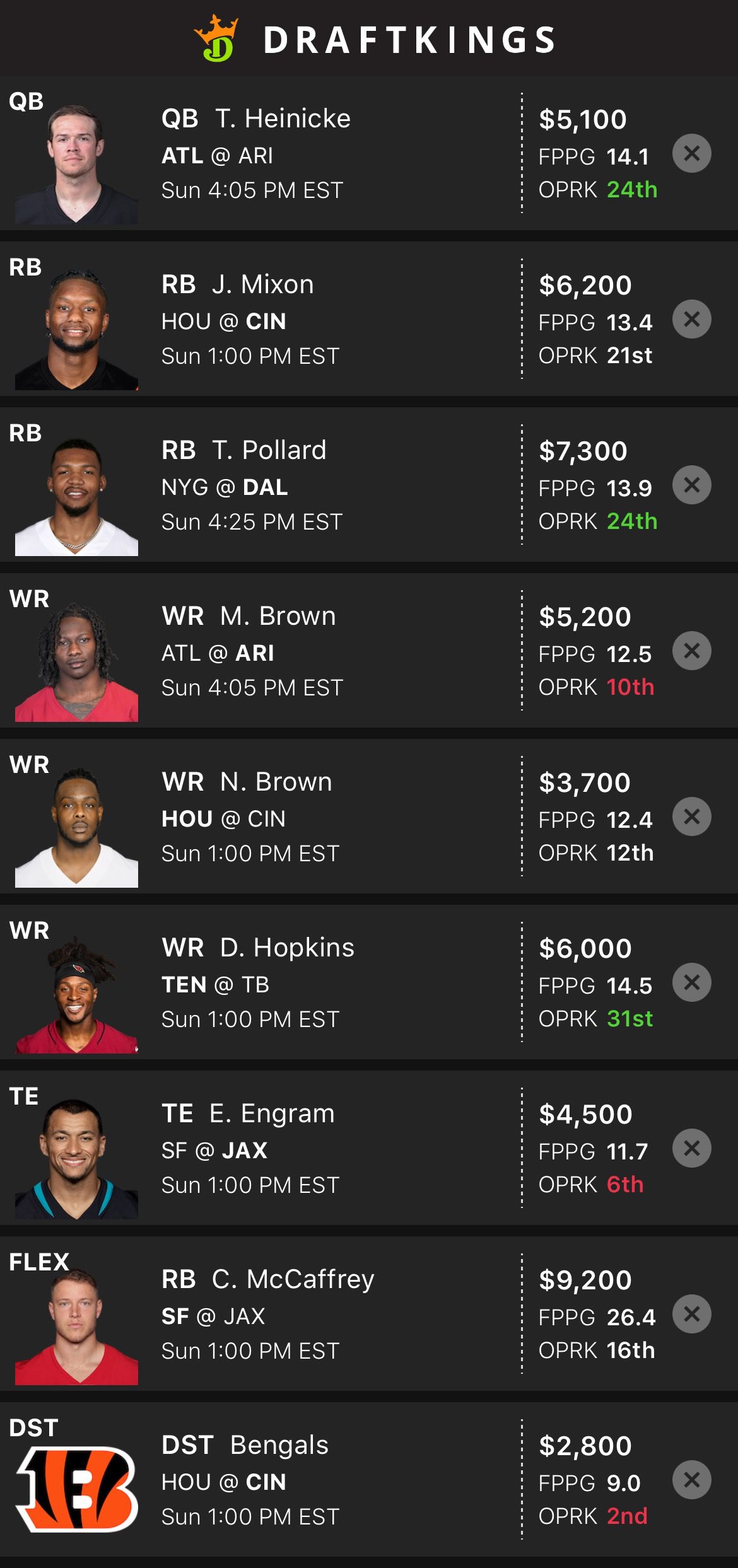 DraftKings Lineup