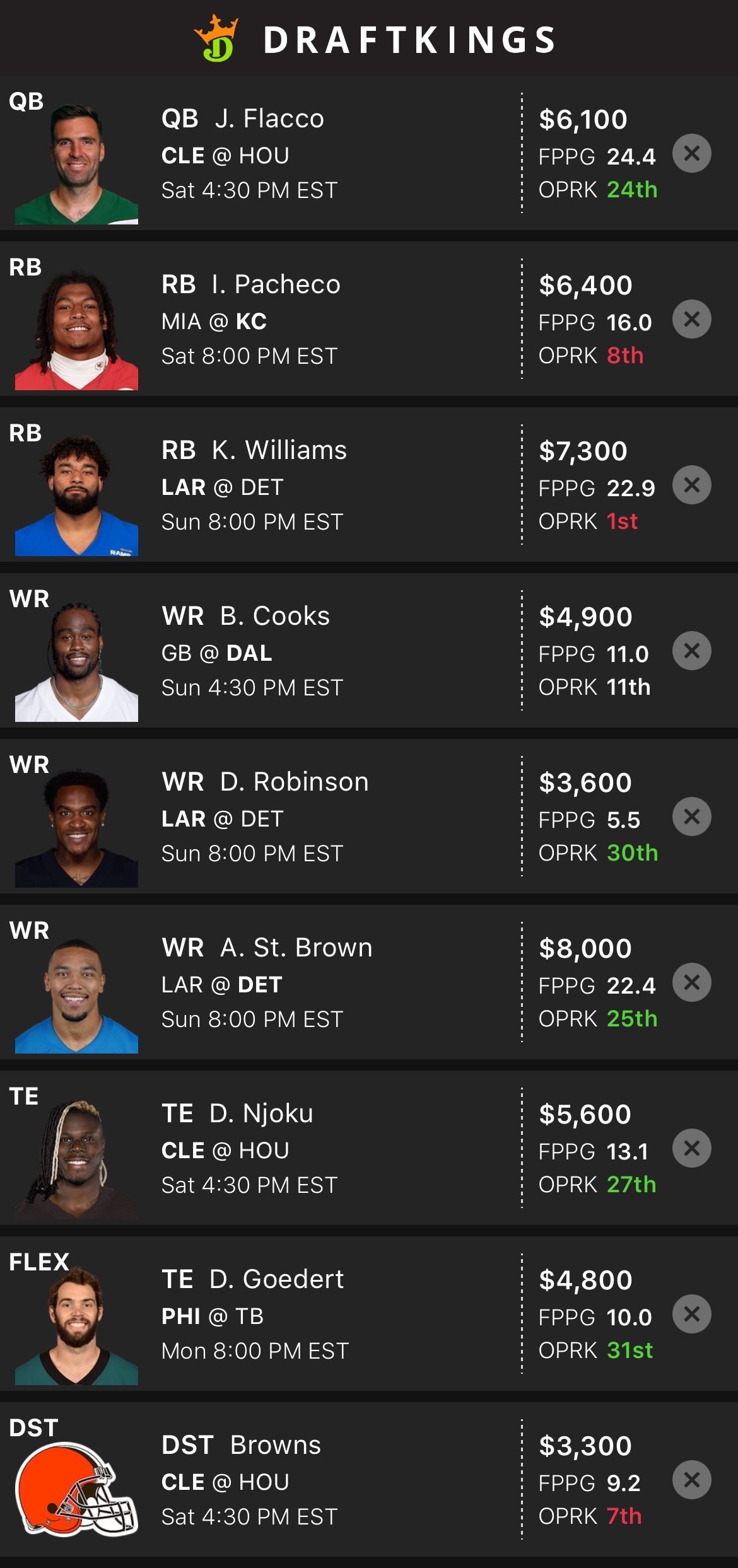 DraftKings Lineup
