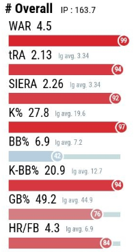 Imai struggled with his control early in his career, but he seems to have solved that issue. He doesn't fear the long ball with a 33.3 FB% to go with his 4.3% HR/FB, and his K% ranked in the 97th percentile among NPB hurlers. Imai limits walks, avoids homers, and generates strikeouts: everything you want a pitcher to do.
