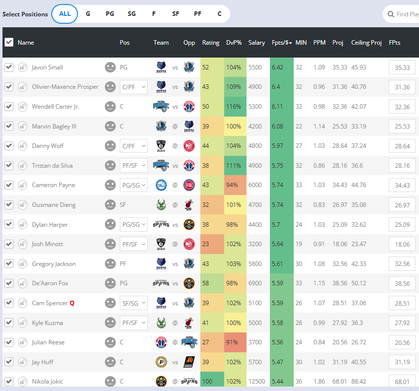 Small will likely have to carry the load for the Grizzlies, who are in a good matchup against Flagg and the Mavs. This game should offer plenty of value potential in both lineups as cheaper players step into prominent roles.