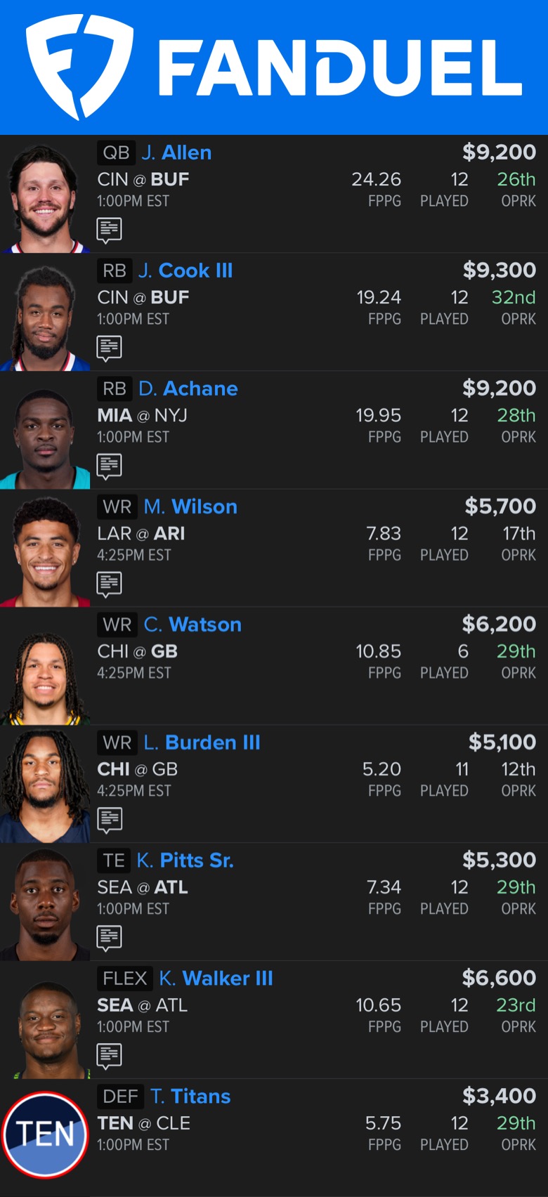FanDuel: Achane-Cook-Watson-Michael Wilson