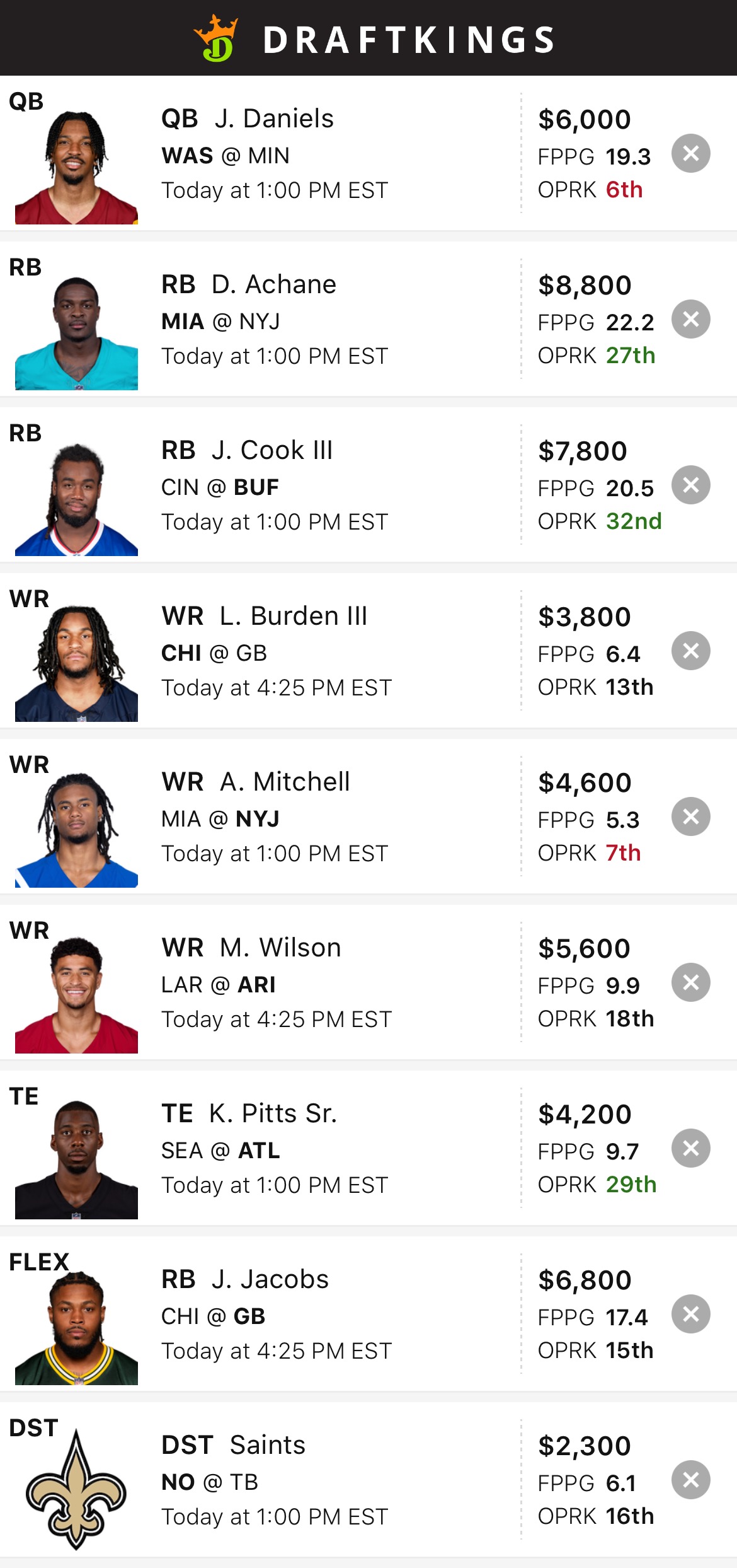 DraftKings: Achane-Cook-Watson-Michael Wilson
