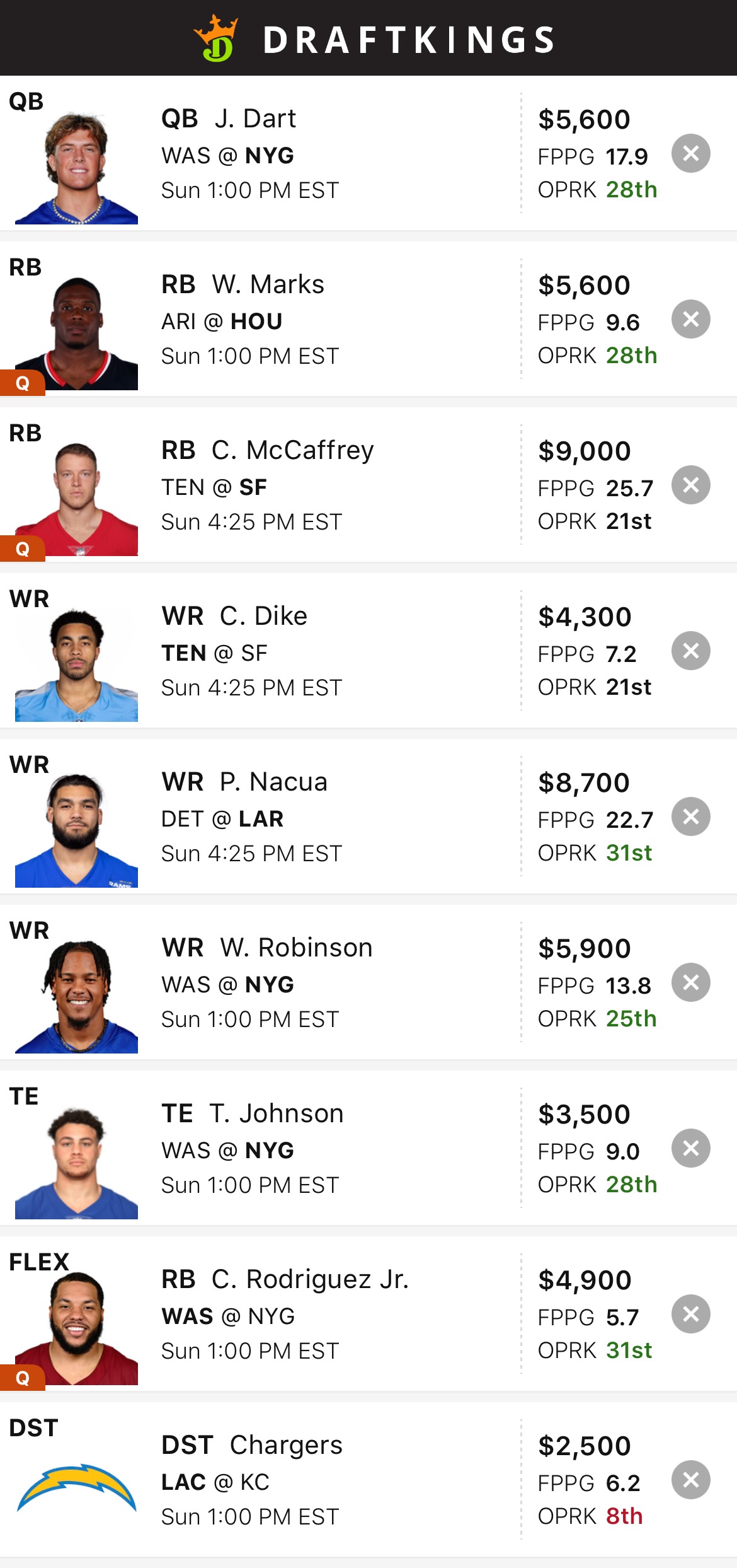 DraftKings Lineup