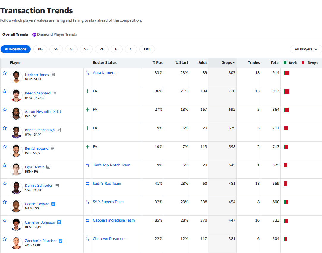 The hype was perhaps a bit too much coming into the season, but I am not ready at all to give up on Sheppard. The second-year guard is averaging just 10-3-3 with 2.0 threes but is chipping in 1.3 steals and shooting just 35% from the floor. He's also only playing 22 minutes per night, and I think he's going to earn more playing time as the season goes along.