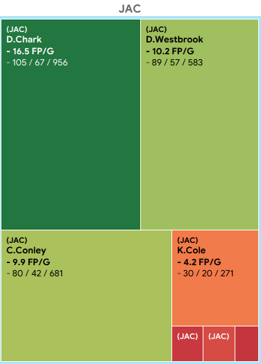 - D.J. Chark came out of nowhere and won some folks their leagues for the sweet price of... nothing! Definitely one of the best waiver wire pickups of the year, he amassed 38.5% of Jacksonville's total fantasy points.